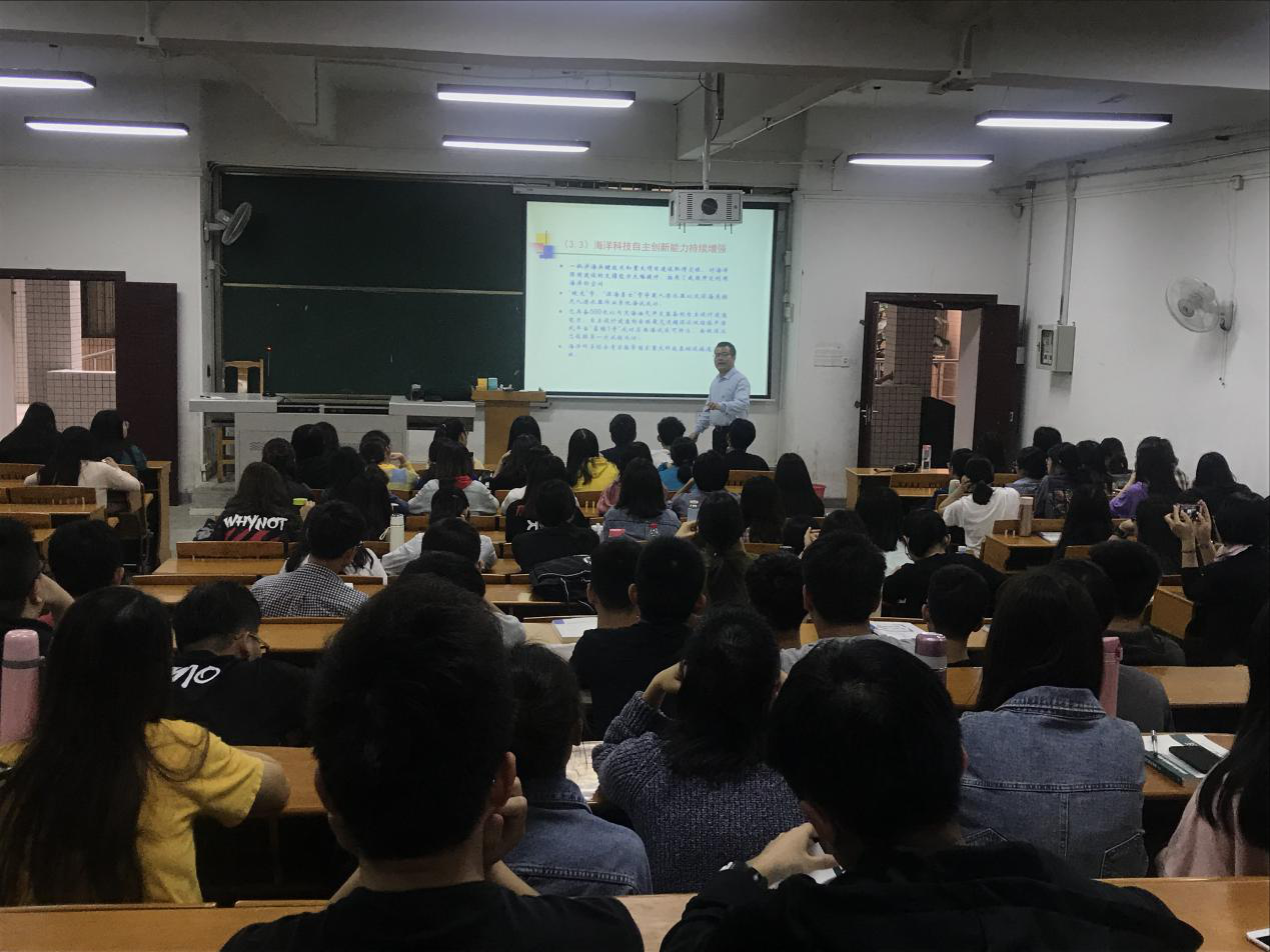 肖健華院長則圍繞海洋經(jīng)濟(jì)與海洋強(qiáng)國的主題,分別從中國海洋經(jīng)濟(jì)發(fā)展歷程,中國海洋經(jīng)濟(jì)的特點(diǎn),發(fā)展海洋經(jīng)濟(jì)、建設(shè)海洋強(qiáng)國的總況,我國海洋經(jīng)濟(jì)發(fā)展中存在的問題,江門海洋經(jīng)濟(jì)介紹等五個(gè)方面,為我院國際經(jīng)濟(jì)與貿(mào)易以及市場營銷專業(yè)大三學(xué)生講授一場生動的思政課。課上,肖院長結(jié)合其在江門市海洋協(xié)會工作經(jīng)歷,重點(diǎn)為學(xué)生講解了江門的經(jīng)濟(jì),特別是江門海洋經(jīng)濟(jì)情況,數(shù)據(jù)詳實(shí)可查,語言幽默風(fēng)趣,互動頻繁,授課氛圍融洽,深受學(xué)生喜歡。