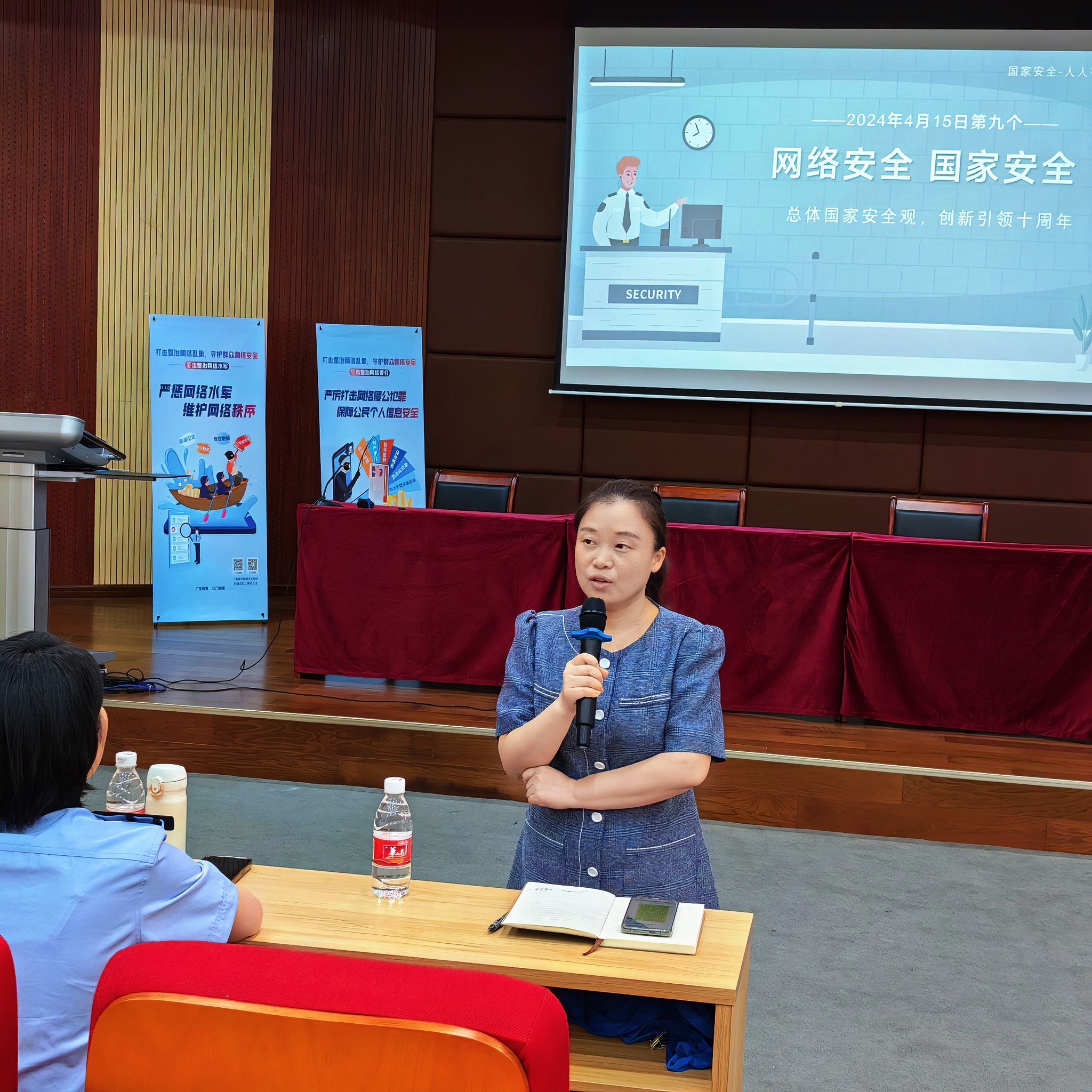 數(shù)字化時代,網(wǎng)絡(luò)安全教育和網(wǎng)絡(luò)謠言防范已經(jīng)成為維護社會穩(wěn)定和國家安全的重要一環(huán)。為增強在校師生的網(wǎng)絡(luò)安全意識,提高他們識別和防范網(wǎng)絡(luò)謠言的能力,2024年4月16日,江門市公安局李楠等3位警官應(yīng)邀走進五邑大學(xué)藥學(xué)與食品工程學(xué)院,為本科生、研究生共計130余人帶來了一場精彩的國家安全教育專題講座,旨在深入貫徹總體國家安全觀,切實提升全民網(wǎng)絡(luò)安全意識,防范網(wǎng)絡(luò)造謠傳謠,共同維護國家安全和社會穩(wěn)定。本次講座由黨委書記謝輝玲主持。