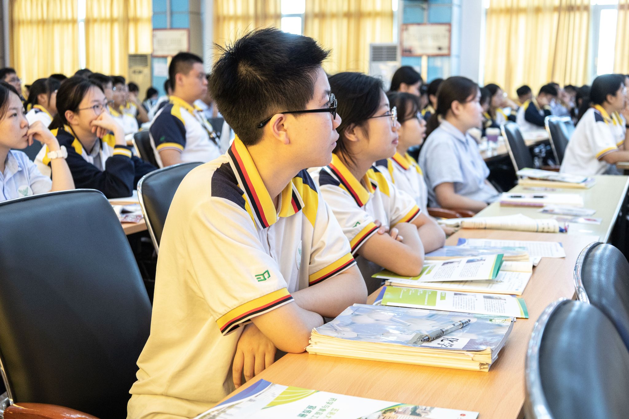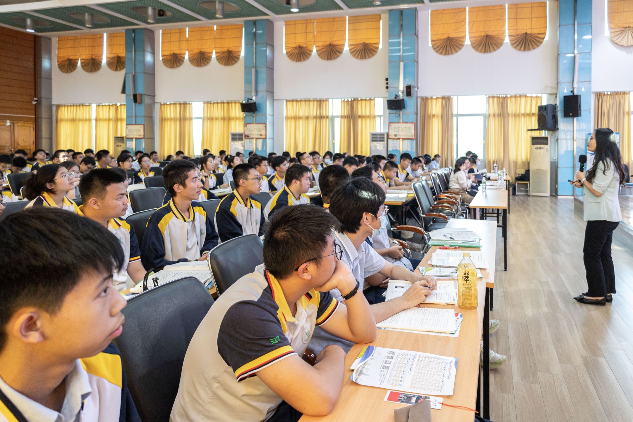 為持續加強我校與優質生源中學的友好聯系,幫助中學生樹立學業生涯規劃意識、激發對高校專業探索的興趣、提升學習動力,2024年5月14日,藥學與食品工程學院黨委書記謝輝玲、藥學碩士點負責人李冬利率隊赴培英高級中學開展招生宣傳工作,培英高中副校長潘春麗、高二年級級長陳宗超參與接待和洽談。宣講會在培英高中三樓大會議室舉行,近300名高二學生參加,會議由培英高中高二年級級長陳宗超老師主持。