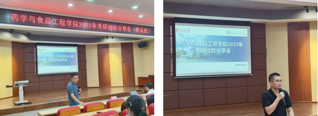 為精準助力制藥工程及食品科學與工程專業學生明晰考研方向,掌握備考技巧,我院于2025年5月8日-9日在馬蘭芳樓307報告廳分專業舉辦考研專題指導活動。學院生物與醫藥碩士點負責人彭金寶、兼職輔導員熊壯兩位專任教師出席并做趨勢分析,同時還邀請到7位保研、考研、調劑等方面有著成功經驗的學長學姐分享寶貴經驗,他們分別是來自大四制藥工程專業的林澤茵、方壯潮、周健榮、趙曉瑩同學和食品科學與工程專業的李泳嫻、莫梓均、黃靖瑤同學。兩場分享會分別由兩位大三年級班主任老師朗明和徐巨才老師主持。