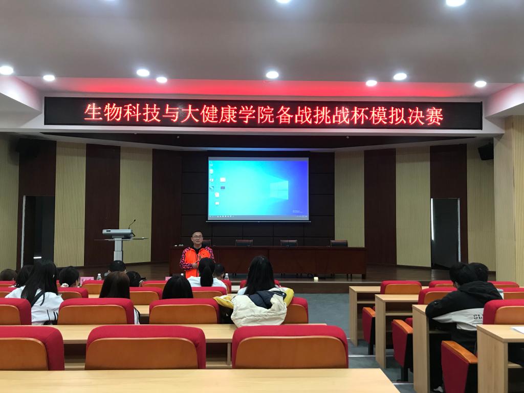 為積極備戰廣東省2021年“挑戰杯”學術競賽,3月5日,生物科技與大健康學院在馬蘭芳三樓報告廳舉行2021年“挑戰杯”模擬決賽。學院黨委副書記黃應忠,副院長郟建波、指導教師陳修文、曾牡玲、黃玉冰以及各項目團隊成員參與本次模擬決賽。