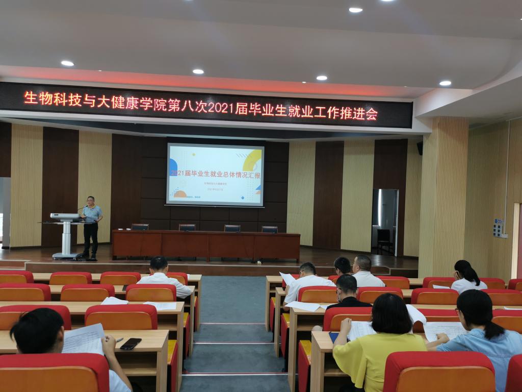 6月21日,生物科技與大健康學院在馬蘭芳三樓報告廳召開第八次2021屆畢業生就業工作推進會,學院班子成員、系主任、黨支部書記、畢業班班導師、研究生導師、輔導員參加了本次會議。會議由黃應忠主持。