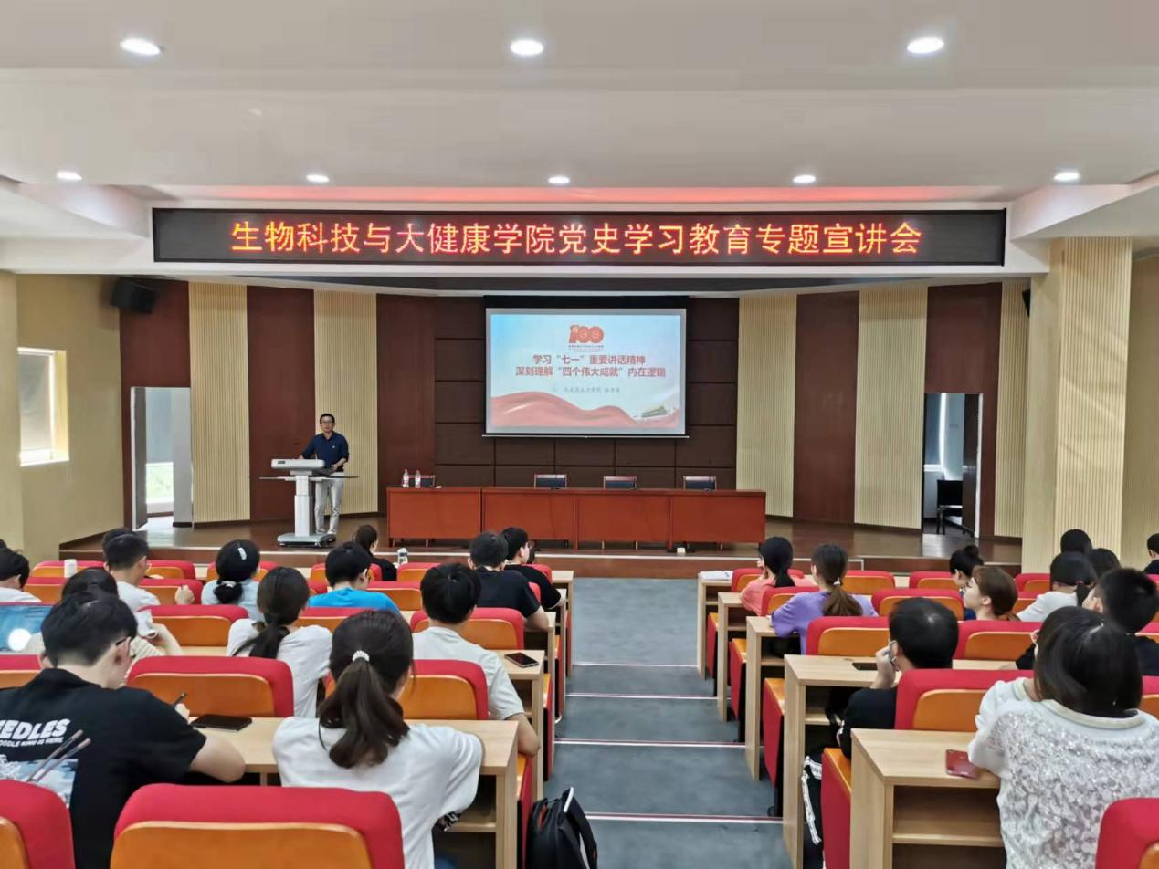 10月28日下午,學校黨史學習教育講師團成員、馬克思主義學院書記徐平華在馬蘭芳樓307報告廳為生物科技與大健康學院學生黨員作了題為“學習‘七一’重要講話精神,深刻理解‘四個偉大成就’內在邏輯”的黨史學習教育專題黨課,全體研究生黨支部黨員參與此次學習。