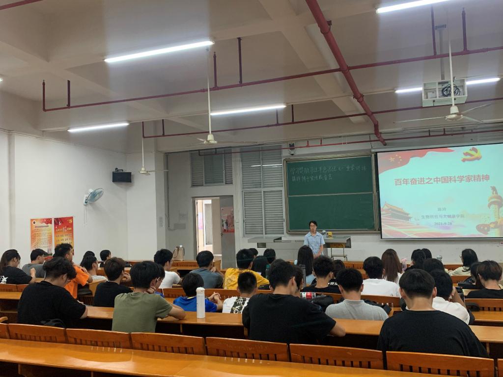 9月28日,生物科技與大健康學院“七一”重要講話精神博士宣講隊成員陳玲在北主樓1001為2020級化學工程與工藝專業(yè)的同學作了題為“百年奮進之中國科學家精神”的宣講報告。