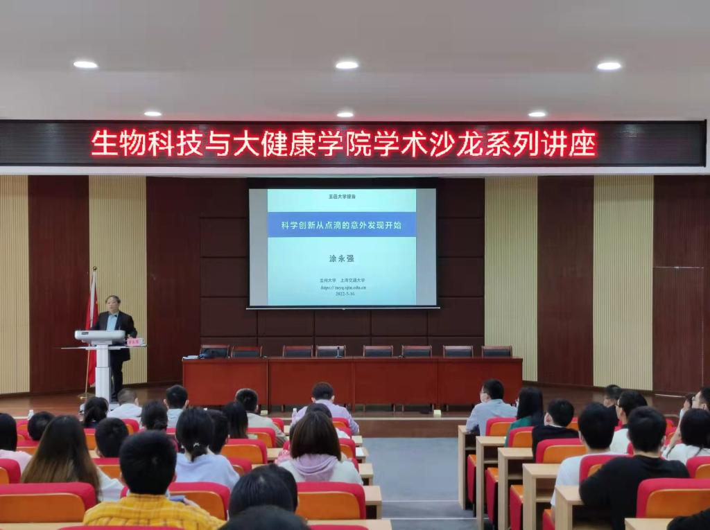5月16日下午,涂永強院士和焦志威教授應邀參加“生物科技與大健康學院學術沙龍” 系列講座,在馬蘭芳樓307報告廳作了題為“科學創新從點滴的意外發現開始”和“不對稱環加成反應的探索”的學術報告,報告會由陳文華院長主持。