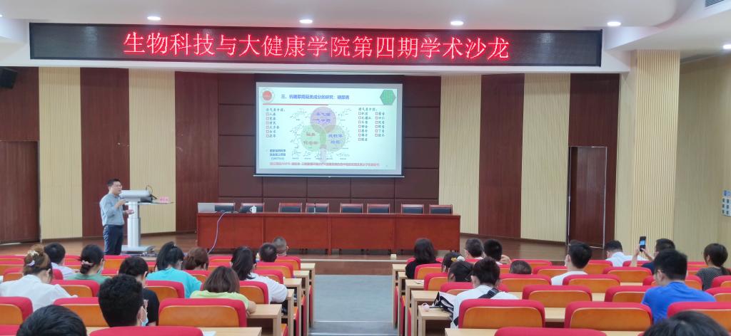 6月21日下午,生物科技與大健康學院學術沙龍第四期馬蘭芳樓307報告廳如期舉行。甘禮社教授和彭超副教授分別以《天然藥物中活性結構的發現與大健康產品開發》《MXene基光催化劑的表界面調控及其光解水制氫性能與機理研究》為主題做了專題報告。全院師生130余人參加了講座。