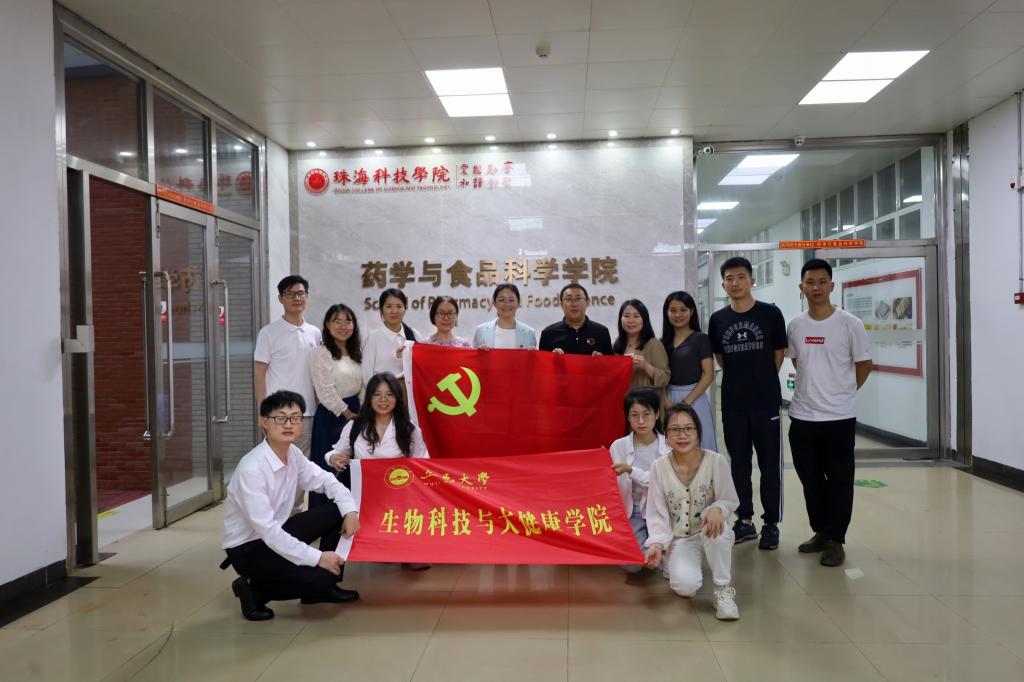 下午,師生代表前往珠海科技學院藥學與食品科學學院開展黨建交流活動。藥學與食品科學學院黨委書記孟凡欣介紹了學院發展歷程、師資隊伍建設、黨建工作經驗、人才培養特色等內容,重點從加強基層黨組織規范化、標準化建設,“一支部一品牌”黨建特色品牌建設,國家樣板支部和省標桿院系建設方面分享了經驗和做法。學院黨委副書記(主持工作)王婷表示,珠海科技學院藥學與食品科學學院是廣東省第一批黨建標桿院系,黨建工作特色亮點突出,交流后深受啟發,希望雙方從專業建設、研究生招生工作、就業工作等方面加強交流,開展對口支部共建聯建,以黨建引領業務,共同推動兩院黨建工作高質量發展。最后,雙方支部黨員圍繞黨建和業務工作中遇到的重點和難點問題,展開了深入的交流和探討,相互介紹經驗做法,分享工作心得。座談結束后,雙方支部在學院大廳合影留念。