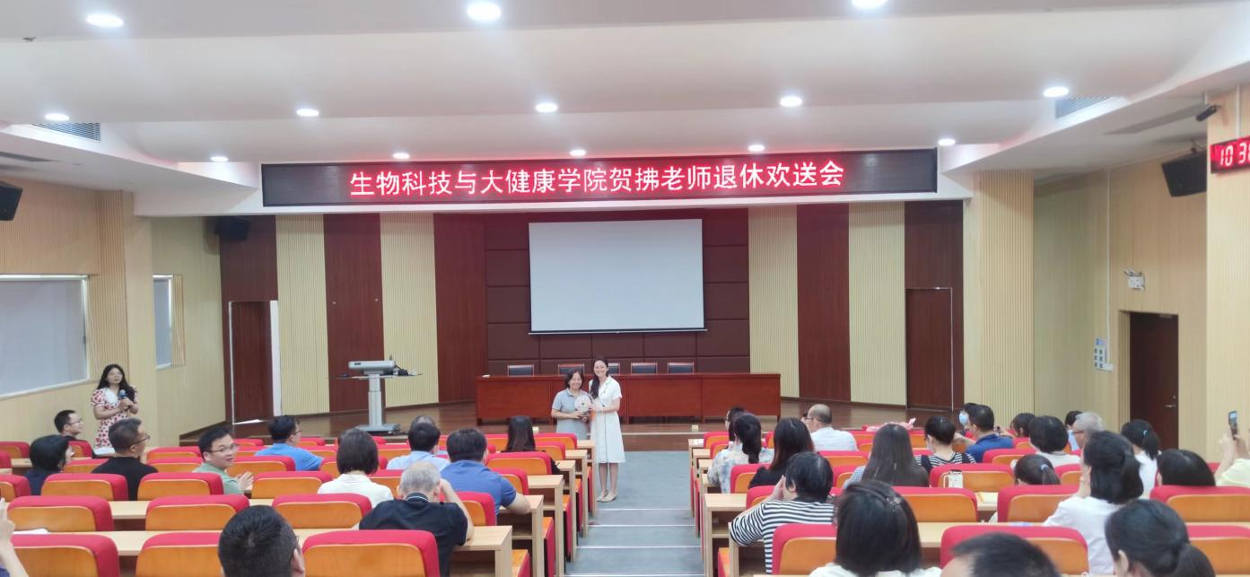 會議以為退休教師賀拂老師舉辦榮休歡送會開始,賀拂老師回顧了在五邑大學28年任教的點點滴滴,表達了對學校和學院的感恩之情和對教師職業的熱愛,為在座的教師傳授寶貴經驗,鼓勵他們為學校學院發展作出積極的貢獻。與會的教師們也暢所欲言,飽含深情地回憶了與賀老師多年來一起奮斗、共處的情景,通過他們的講述,老師們感受到了賀老師愛崗敬業、嚴謹治學、無私奉獻的師德風范。王婷副書記代表學院向賀老師為學院建設發展做出的重要貢獻表示衷心感謝,并贈送了紀念品,號召老師們不忘初心,潛心立德樹人,學習老教師勇于擔當、恪盡職守的高尚風范,爭做“四有”好老師。