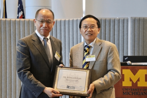 范教授接受密西根大學Eugene Chen教授的頒獎