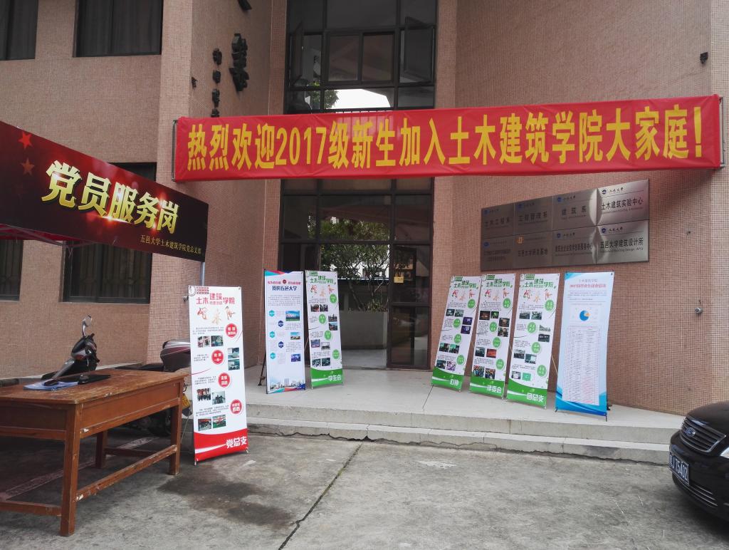2017年9月9日,為了配合我院做好迎新工作,土木建筑學院學生黨支部在院樓前空地設立了黨員服務崗,學生黨員們都積極參與本次活動。通過參與本次迎新活動,學生黨員們增強了的黨員身份意識,發(fā)揮了黨員先鋒模范作用和黨組織的戰(zhàn)斗堡壘作用。