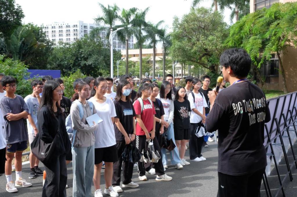 活動伊始,新生們緊隨講解員的腳步,探索“逢山開路,遇水架橋”橋梁系列展覽和“綠色小屋”科普展示。大橋飛架,跨越山海,橋梁作為中國的“響亮名片”,講解員首先介紹了中國橋梁的發展現狀,以提升同學們對中國橋梁的認同感。隨后,在講解過程中,講解員生動舉例,通俗易懂地介紹了以“山水清遠,鳳舞北江”為設計主題的洲心大橋,以及以“橋、島、隧”為一體的港珠澳大橋等,激發了同學們對即將在2024年通車的深中通道的濃厚興趣。