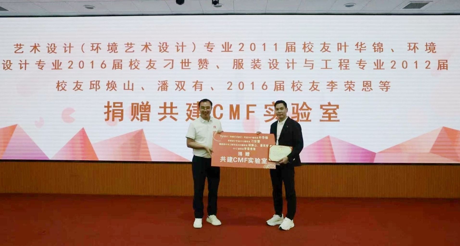 多位校友懷著對母校的赤子之心,帶來了兩份“禮物”:葉華錦、潘雙有、邱煥山、李榮恩、刁世贊等校友聯合捐贈共建CMF實驗室,將為學院提供先進的硬件支撐,助力學生在色彩、材料與工藝領域開展創新實踐;梁勁松校友捐贈了國際設計獎書籍,涵蓋全球頂尖設計賽事優秀作品,助力學生拓寬國際設計視野。