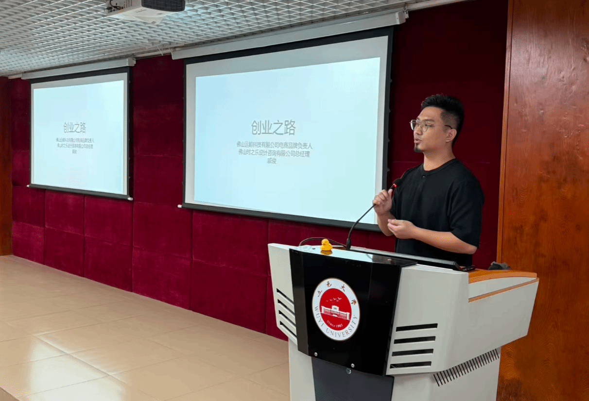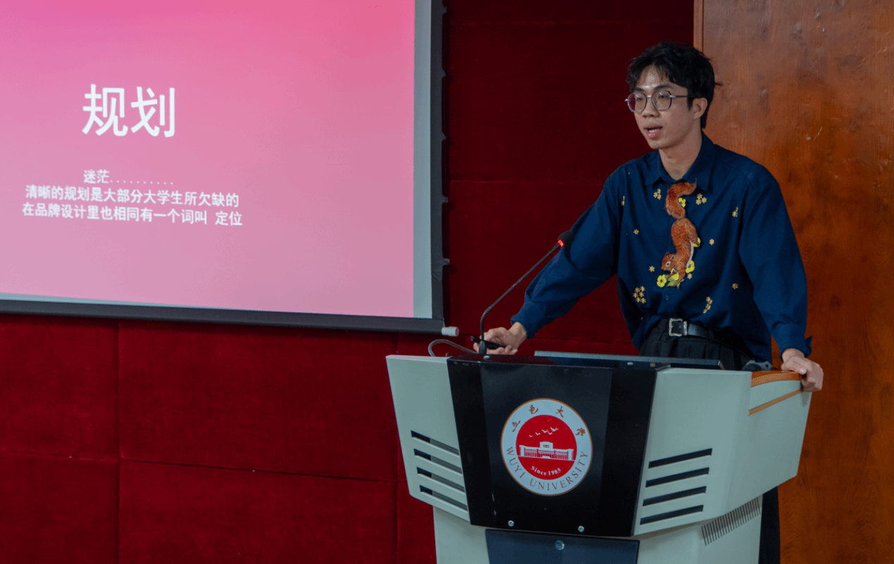 孔顥然校友(2024屆工業設計專業畢業生、孔立之(上海)品牌設計有限公司董事長、五邑大學建校40周年標識設計者)以職業規劃為切入點,圍繞“定位、作品與長期主義”提出發展建議,強調專業作品集是設計師的核心競爭力載體,需以階段性自我規劃推動能力成長與行業競爭力提升。