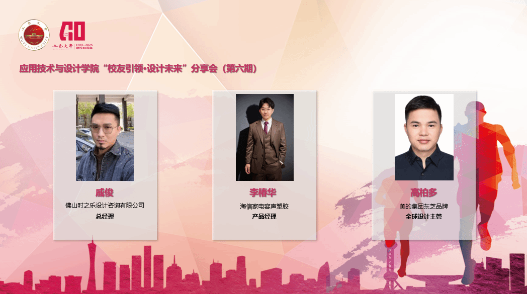 高柏多校友(2012屆工業設計專業畢業生、美的集團東芝品牌全球設計主管)圍繞家電行業變革分享行業洞察,分析數智時代背景下工業設計角色從造型設計向價值系統構建轉變,并提出未來設計人才需具備學習力、系統思維與主動適應能力。