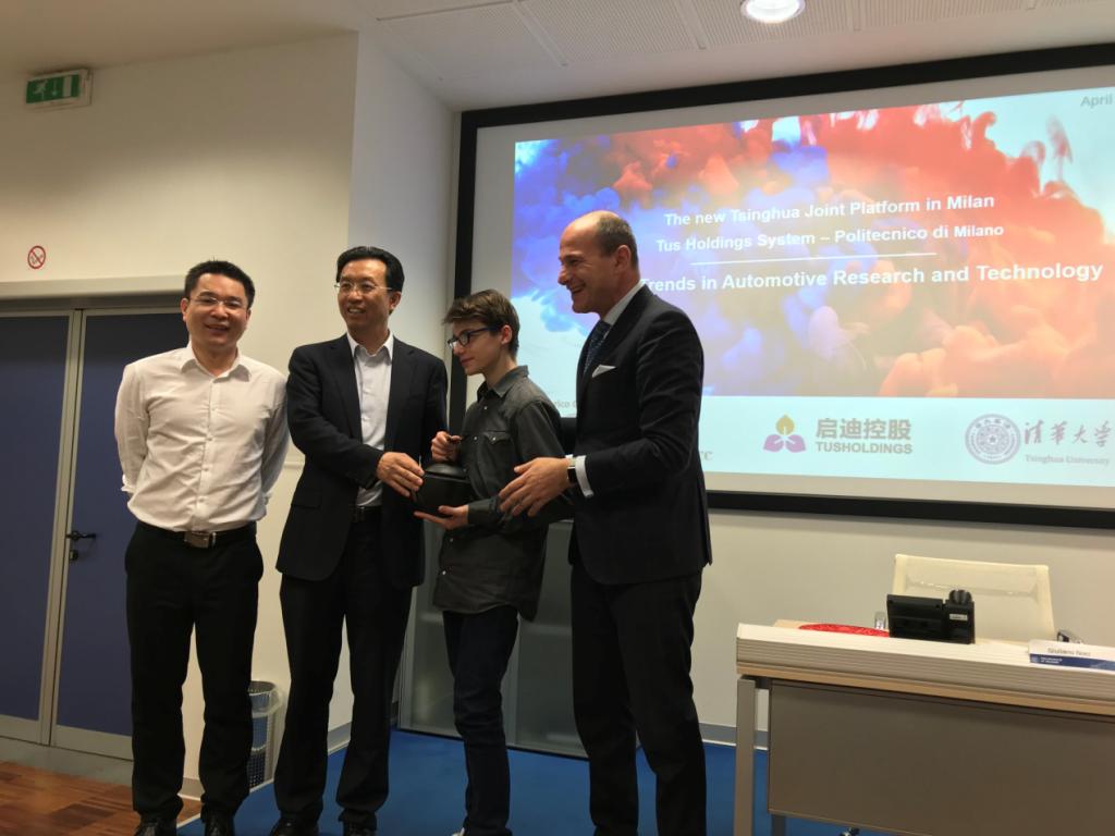 清華控股副總裁陳鴻波將輪回生鐵壺贈送給米蘭理工副校長朱利亞諾·諾齊先生