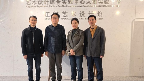 隨后,調研組參觀了藝術設計綜合實驗中心認知實驗平臺(江門藝術設計館)。該場館集非遺技藝展示、文創開發、傳統工藝體驗于一體,讓調研組直觀感受“非遺+”的育人模式。李潔副教授表示,學院將非遺基因深度融入藝術設計教育,為文化生態保護提供了高校智慧方案。