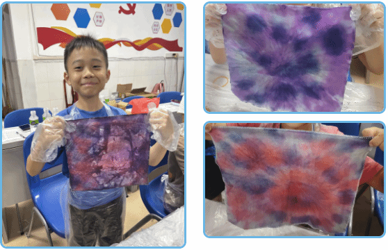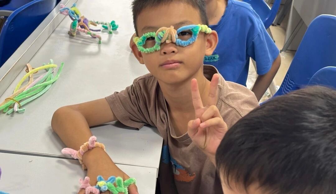 粉色藝術課堂。扎染、彩泥、扭扭棒手工與基礎舞蹈體驗,讓孩子們在動手與律動中提升創造力,80%的孩子能獨立完成手工作品。