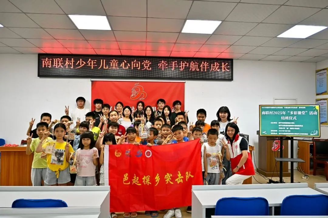 當暑假的陽光灑滿南聯村新時代文明實踐站,一群身著志愿服的青年身影格外亮眼。7月14日至21日,五邑大學“邑”起探鄉突擊隊攜手恩平市恩城街道南聯村委會,開展了為期8天的“多彩課堂”三下鄉活動。這支由14名隊員組成的隊伍,用多種色彩的課堂串聯起知識與歡樂,為鄉村兒童的暑假添上了濃墨重彩的一筆。